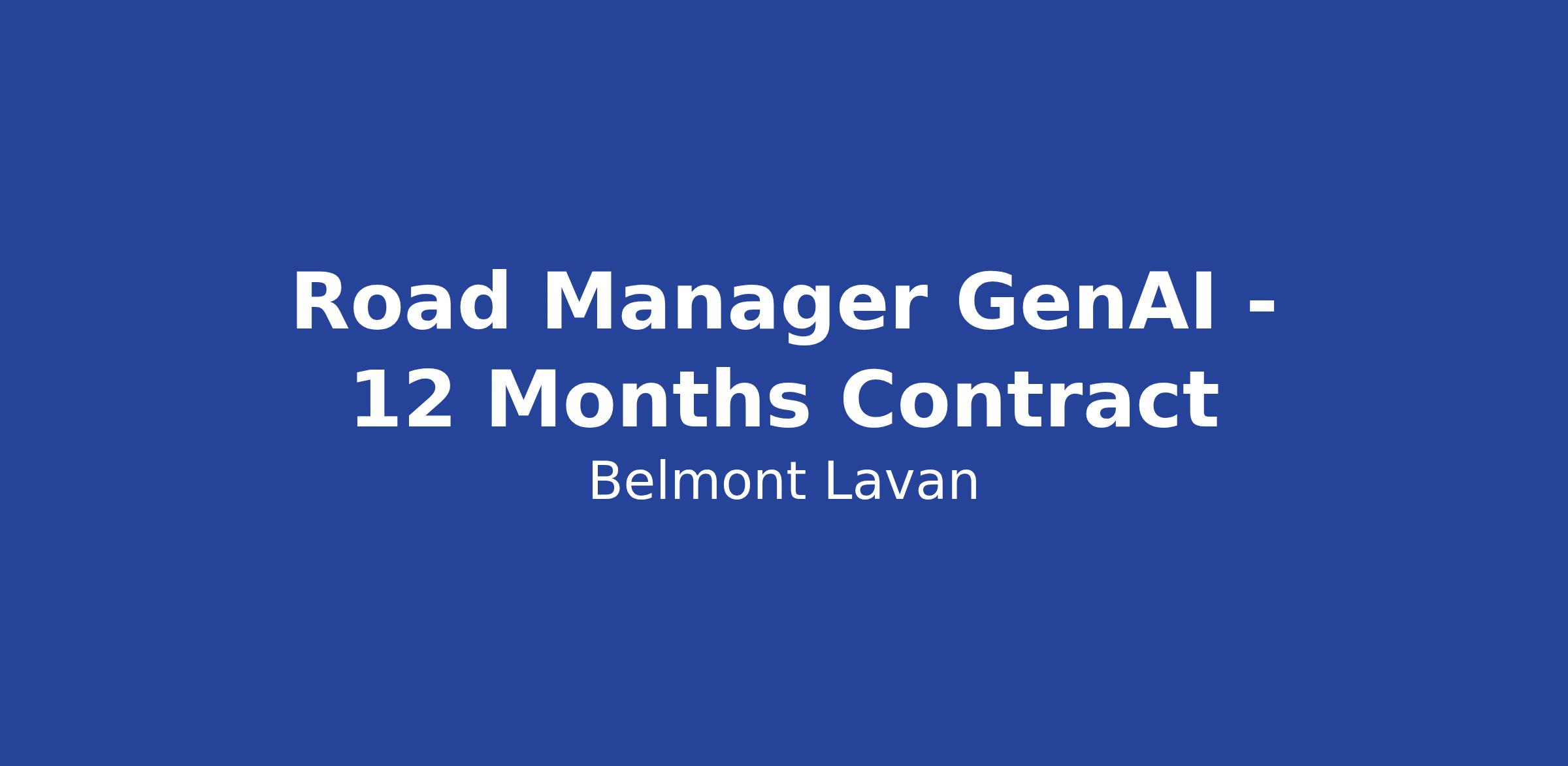 DescriptionBelmont Lavan Ltd is seeking a highly motivated and experienced Road Manager GenAI for a 12-month contract. In this role, you will be responsible for overseeing the implementation of Generative AI technologies in our road management projects. You will work closely with cross-functional teams to enhance project outcomes using innovative AI solutions.
